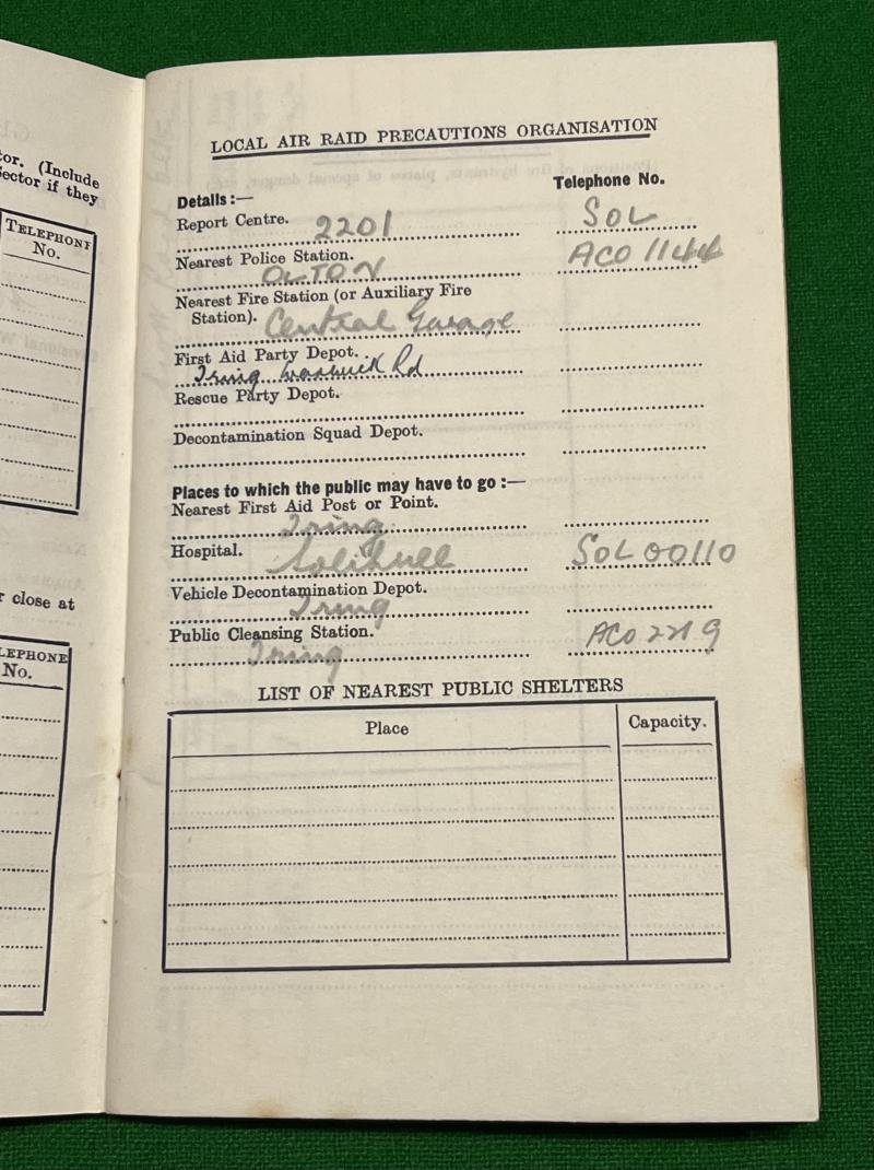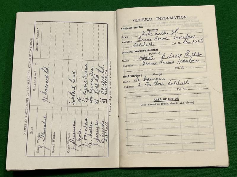 1940 A.R.P./W/2 County of Warwick Warden's Household Register. Partially filled in register which appears to record part of Solihull but also contains details for Divisional and Head Wardens of Sector 40 of 6 Group. Good, clean, used condition with various pencil and ink entries, uncommon.
