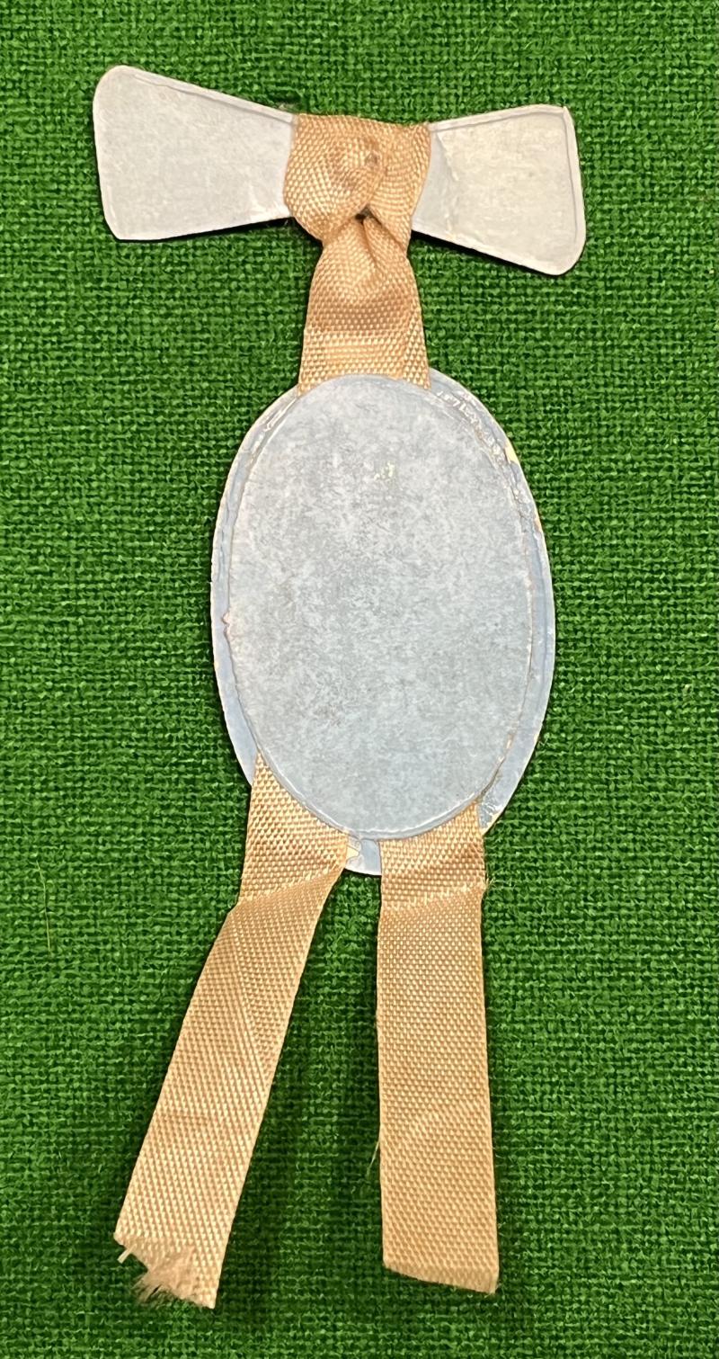 Generic, card and ribbon Salute the Soldier badge featuring the Abram Games' 'Liberator' design, probably given in exchange for a donation towards the campaign. Good, used condition complete with card button hole fixing.