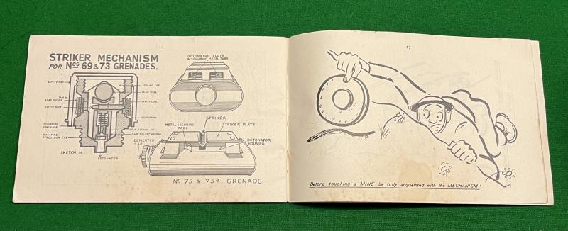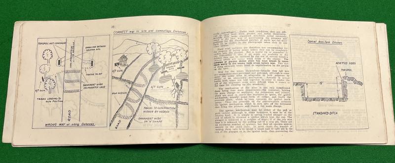 Another commercial publication in the 'Bernards' series. 48pgs aimed primarily at the Home Guard, this publication describes the best ways of tackling tanks. Using a combination of diagrams, sketches and amusing cartoons to illustrate the subject. ' Cambrai ' covers subjects from camouflage, obstacles, ambushes, improvised mines and a detailed section covering grenades. Good, clean condition with contemporary ownership stamps to covers. Uncommon.