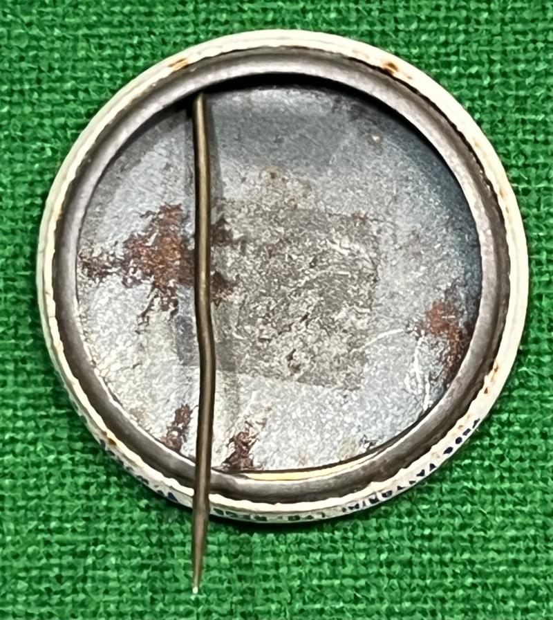 30mm tin and celluloid lapel pin produced for Chichester & District War Weapons Week held in May 1941. The badge produced by Thos.Fattorini, B'ham features a warship design and was probably given for a donation to the fund. Good, used condition with some light marking.