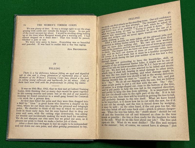 C1944 1st ed. ' Meet the Members - A Record of the Timber Corps of the Women's Land Army '. 76pgs, 12 B/W illustrations. A contemporary history of the Timber Corps in good condition with attractive boards In Corps colours. Good, used condition with some light staining to plates.