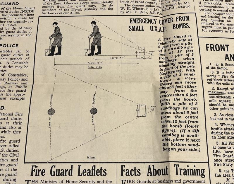 The Midnight Watch No.18 ' - ' Broadsheet of Britain's Fire Guard and Civil Defence Workers '. Designed as a poster format information sheet and containing specific and information and news pertinent to the Fire Guard. This example features illustrated articles on Sectors and Areas, FG duties and the comic strip Half-Trained Harry. In good used condition, has been folded.