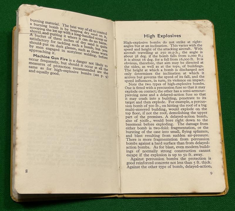 1938ed,35pgs manual for London Transport staff covering the basics of ARP. Starting with an introduction to the staff the manual concentrates mainly on poison gas but includes sections on bombs and assistance to passengers. In good used condition with marking to covers and some damage to interior which does not effect the content.