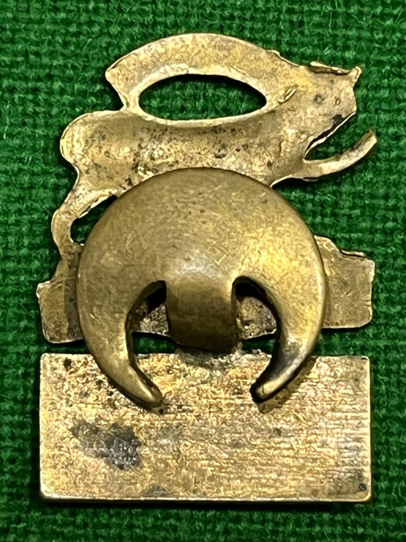 Gilt and enamel Leicestershire Home Guard lapel badge. Half moon lapel fitting to reverse. Generally good, used condition with some enamel damage to scrolls but uncommon.