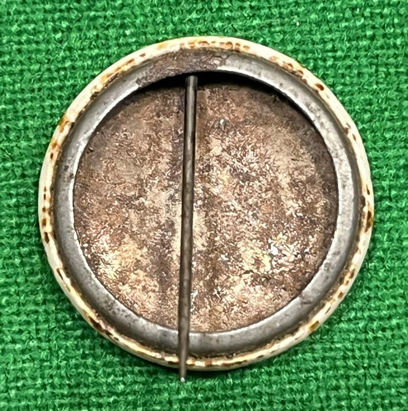 Approx. 25mm tin and celluloid pinback badge for Brierley Hill Warship Week 1941. Manufacturer marked ' Thos. Fattorini, B'ham ' and is in good used condition with light rusting to reverse and some foxing.