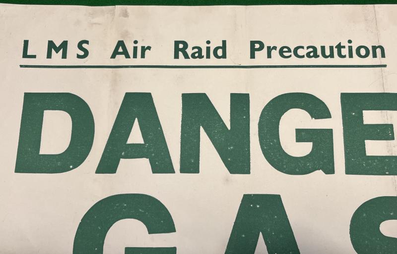 33cms x 20cms approx. poster issued by the ARP dept. of the London Midland Scottish Railway to warn of the the danger of gas. Printed on heavy weight paper this example is in good used condition with some marking with minor tears and has been folded.