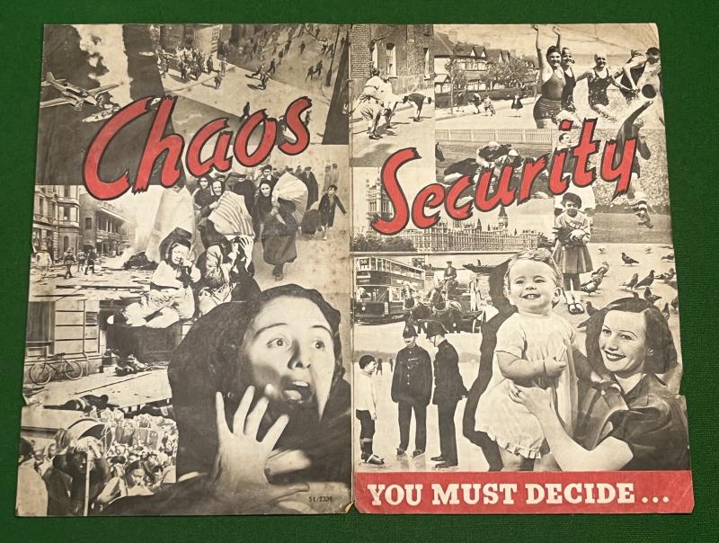 Uncommon A4, double sided recruiting flyer for ARP services, probably pre-war. Photographic covers offering the choices ' Chaos ' ' Security ' and the options for the various ARP services to the interior. Generally good condition but with nibbled edges.