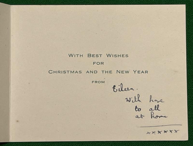 Women's Land Army Christmas Greetings card published by Raphael Tuck & Sons on behalf of the WLA Benevolent Fund featuring an embossed design of a WLA badge. Good, used condition with some very light marking.