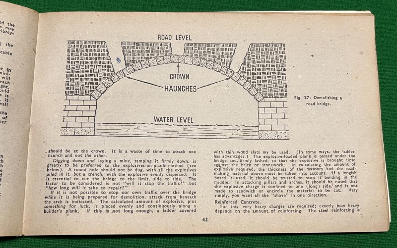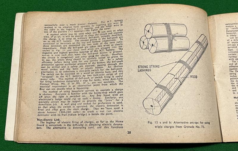 C1943 ' What the HG Needs to Know About Explosives ' by Lt.Chas.C.Knight. One of the Bernards ' Key ' guides series, the manual uses its 68pgs to give a good coverage of the general nature of explosives, their storage and care and their use in typical Home Guard scenarios. Illustrated throughout with sketches and diagrams. One of the more sort out of the Bernards titles in good, used condition with minor rusting to staples.