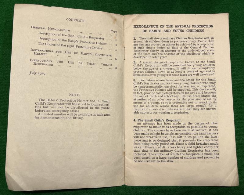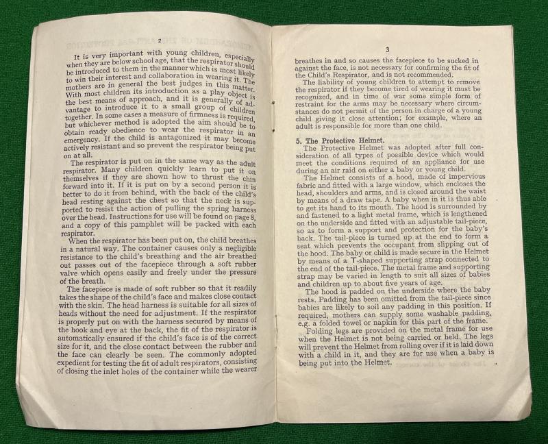 example of the small child's respirator contained in it's original cardboard case and complete with explanatory leaflet. Produced in a child friendly orange rubber with a blue coloured filter similar to the American produced child's mask that was specifically designed to look like Mickey Mouse and to be less frightening to children. The British version was less convincing and this example was probably produced by the John Bull Rubber Co.Ltd., in 1940 and is fitted with the Cortex Extension filter. In good, slightly dusty but supple condition with all elastics intact.Cardboard case in used condition with some marking, rubbing complete with carrying strap. Excellent example.