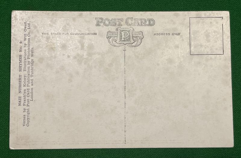 Illustrated by Will Owen with verses by Franklyn Kelsey ' Nazi Nursery Rhymes ' twists traditional children's nursery rhymes and songs to mock the Nazis. Postally unused with light marking and uncommon.