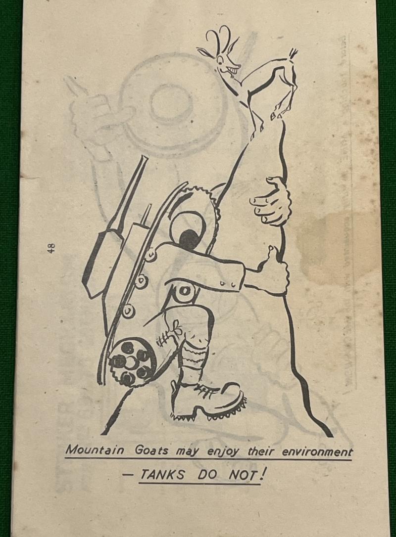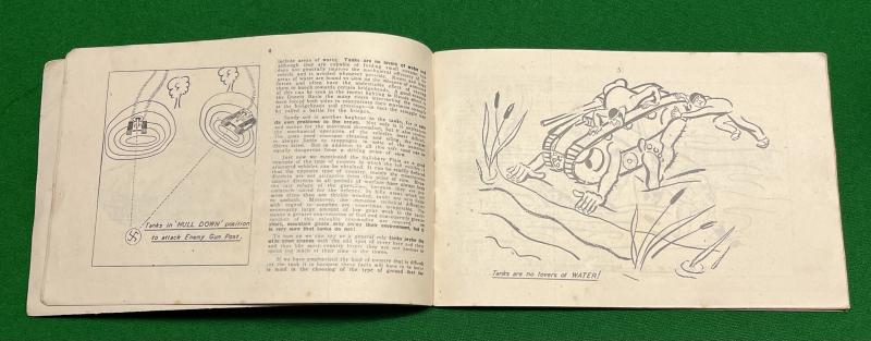 Another commercial publication in the 'Bernards' series. 48pgs aimed primarily at the Home Guard, this publication describes the best ways of tackling tanks. Using a combination of diagrams, sketches and amusing cartoons to illustrate the subject. ' Cambrai ' covers subjects from camouflage, obstacles, ambushes, improvised mines and a detailed section covering grenades. Good, clean condition with contemporary ownership stamps to covers. Uncommon.