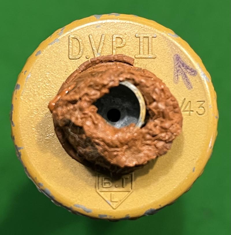 Detector, Vapour, Pocket, MkII and air sampling pump. 1944 dated tin containing 1943 dated papers and reagents required for the testing for the presence of Mustard Gas and other Blister Gases. Complete with 1943 dated notebook. Contents in unissued condition with light rubbing to exterior. Comes complete with 1943 dated air sampling pump in it's dated canvas pouch.