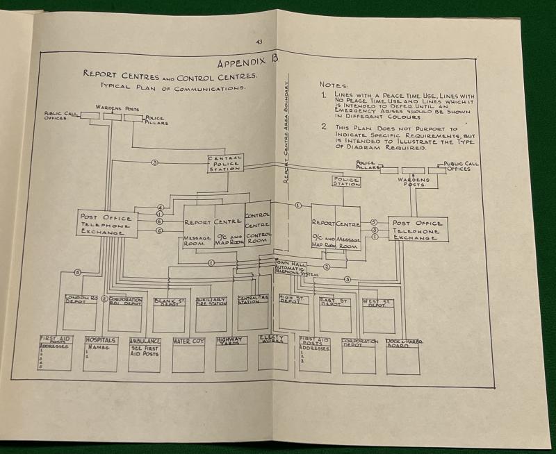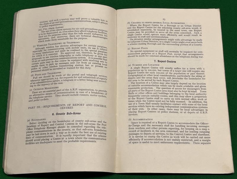 1939 2nd Ed. ARP Memorandum No.6 ' Local Communications & Reporting of Air Raid Damage '. 49pgs with fold-out plate outlining the structures and organisation of the ARP reporting network. Good, used condition with marking and minor abrasions to covers. One of the less commonly encountered ARP memorandums.