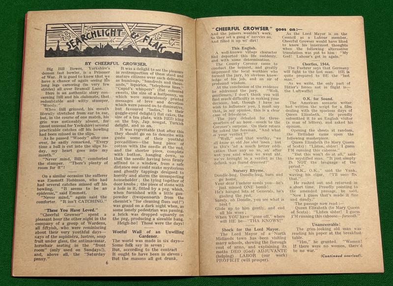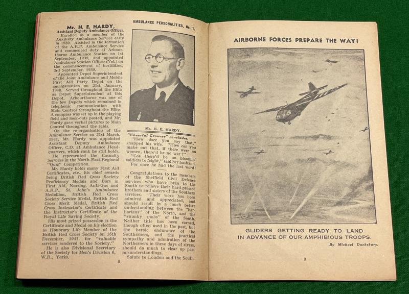 September/October 1944 edition of 'All Clear' the magazine of Sheffield's Civil Defence Services. This particular edition, 32pgs, deals with the ' Hunt for S.D.2.s ' and ' Those Doodle-Bugs '. Good, clean condition.