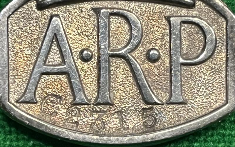 ARP lapel badge. 38/39 London hallmarked silver ARP lapel badge with pin fitting as commonly issued to women. To the obverse a number ' C6608 ' has been stamped, a practice that has been observed with Birmingham ARP issues although I am sure not confined to this area exclusively.