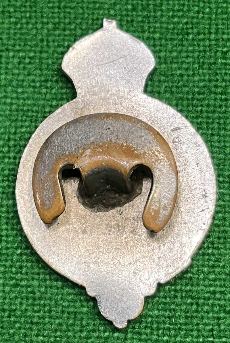 Chrome and enamel Home Guard lapel badge. Uncommon large design ( 40mm ) with half moon lapel fitting to reverse. Good used condition with bright chrome and some minor abrasions to enamel. Some wear to chrome.