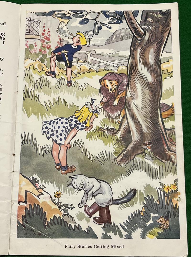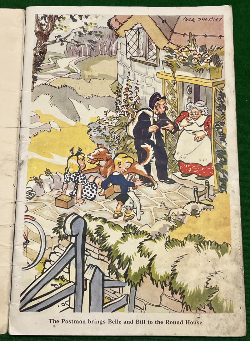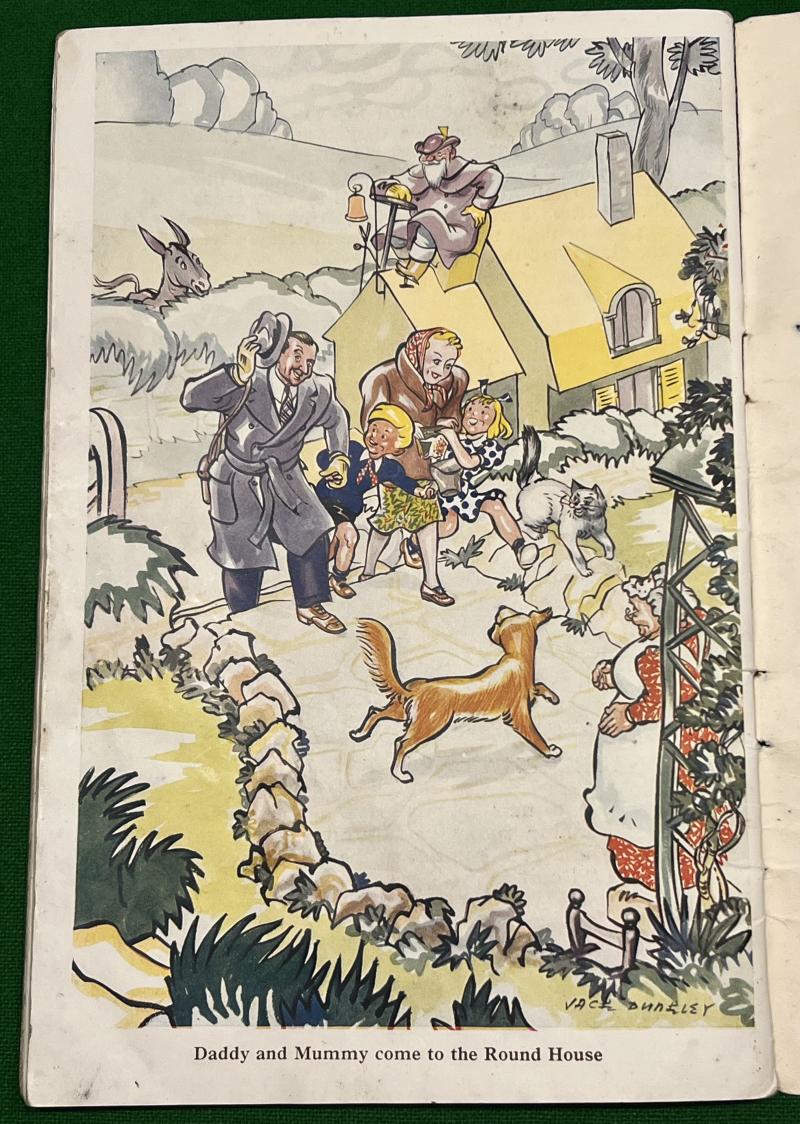 1940 2nd ed. The Evacuees In The Forest. With Pictures by a New Artist For Children - Jack Dunkley. 35pgs with colour illustrations telling the classic story of the evacuees going to the country and their adventures concluding with a visit from their parents. Scarce publication which has unfortunately had some damage to the back cover, contents however, largely clean with some marking, priced to accommodate this. Scarce.