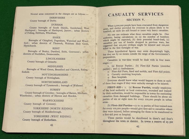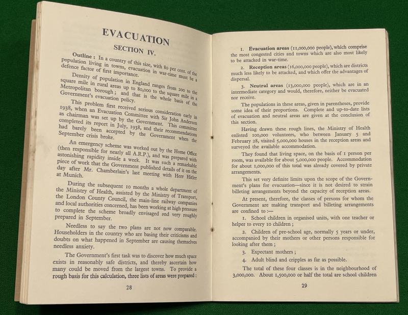 1939 ' A.R.P. A Complete Guide to Civil Defence Measures ' issued by the Daily Telegraph. 80pgs covering various aspects of Civil Defence from Casualty Services, Protection, Evacuation and gas. Good, clean condition featuring a striking colour cover.