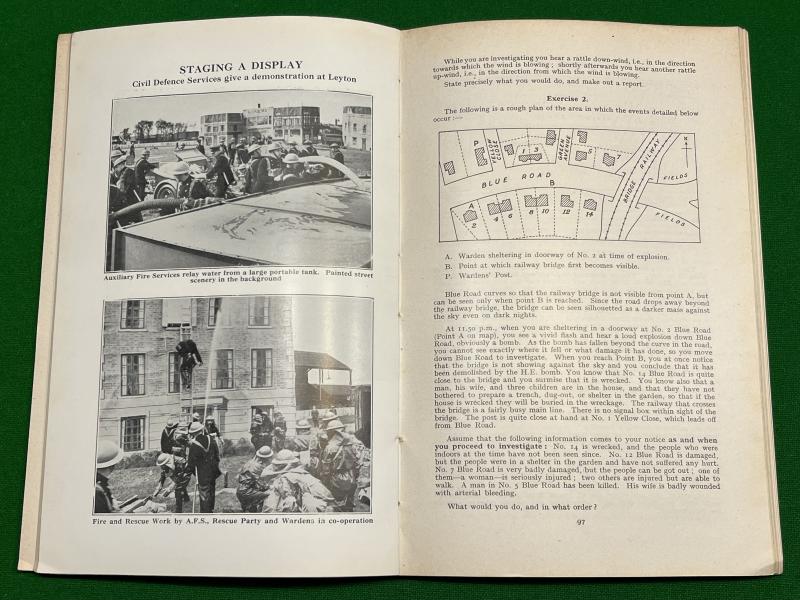 1939ed. 'Tactical Training in ARP for Wardens and other Civil Defence Services' by S.Evelyn Thomas. Early commercial manual on civil defence with 204pgs illustrated throughout with b/w photographs and diagrams with all colour centre plates illustrating the Watford visual system of CD control. In good, used condition with minor chipping to cover some light creasing and marking etc., uncommon.