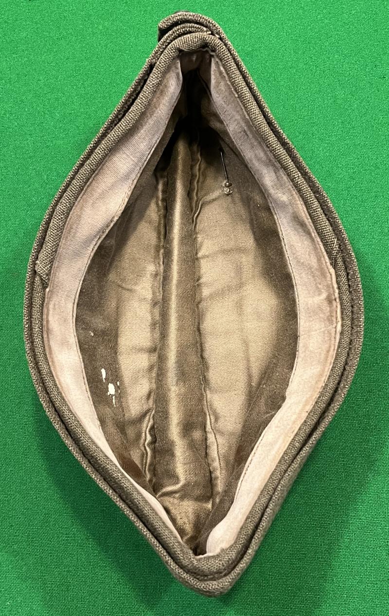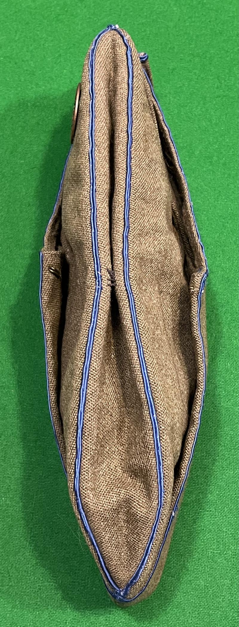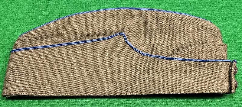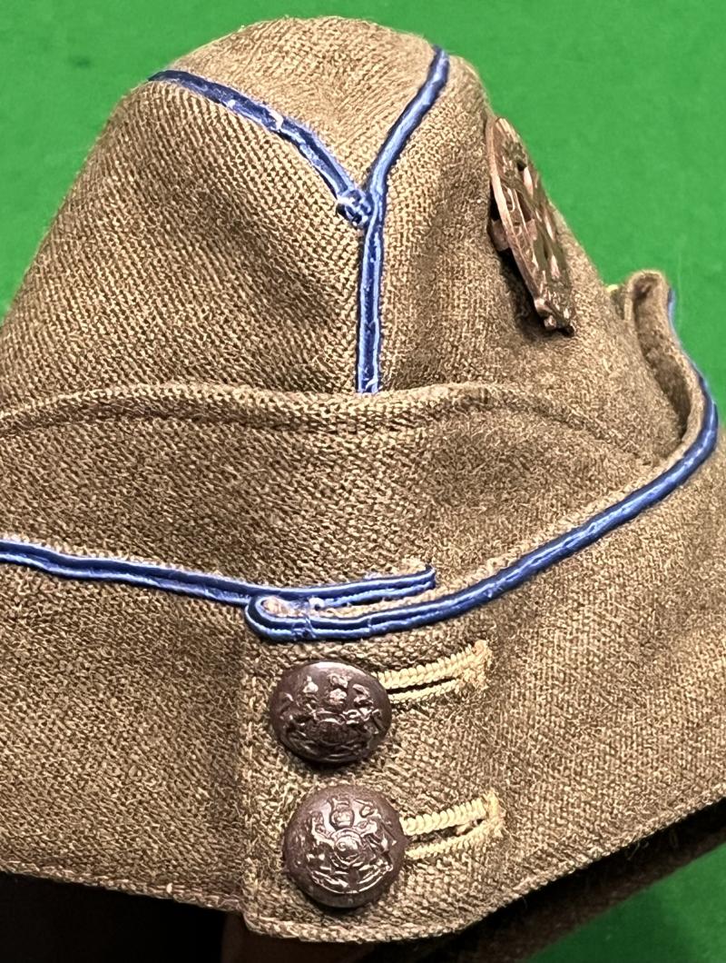 A scarce example of the side cap worn by volunteers of the the Mechanised Transport Corps. Probably supplied by the official uniform supplier to the MTC, Lillywhites of Piccadilly and Knightsbridge but no label present. Fine serge body with blue piping to crown and skirt, bronzed MTC pin back cap badge and bronzed G.S. buttons. Glazed cotton lining with plush headband.