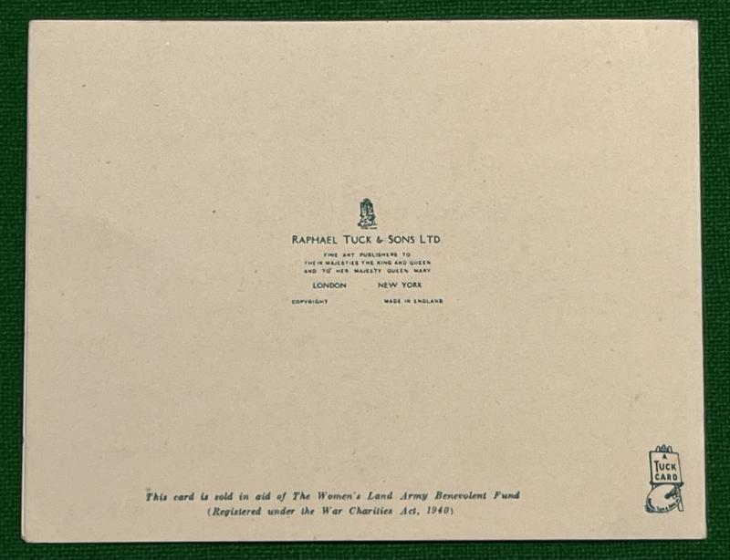 Women's Land Army Christmas Greetings card published by Raphael Tuck & Sons on behalf of the WLA Benevolent Fund featuring an embossed design of a WLA badge. Good, used condition with some very light marking.