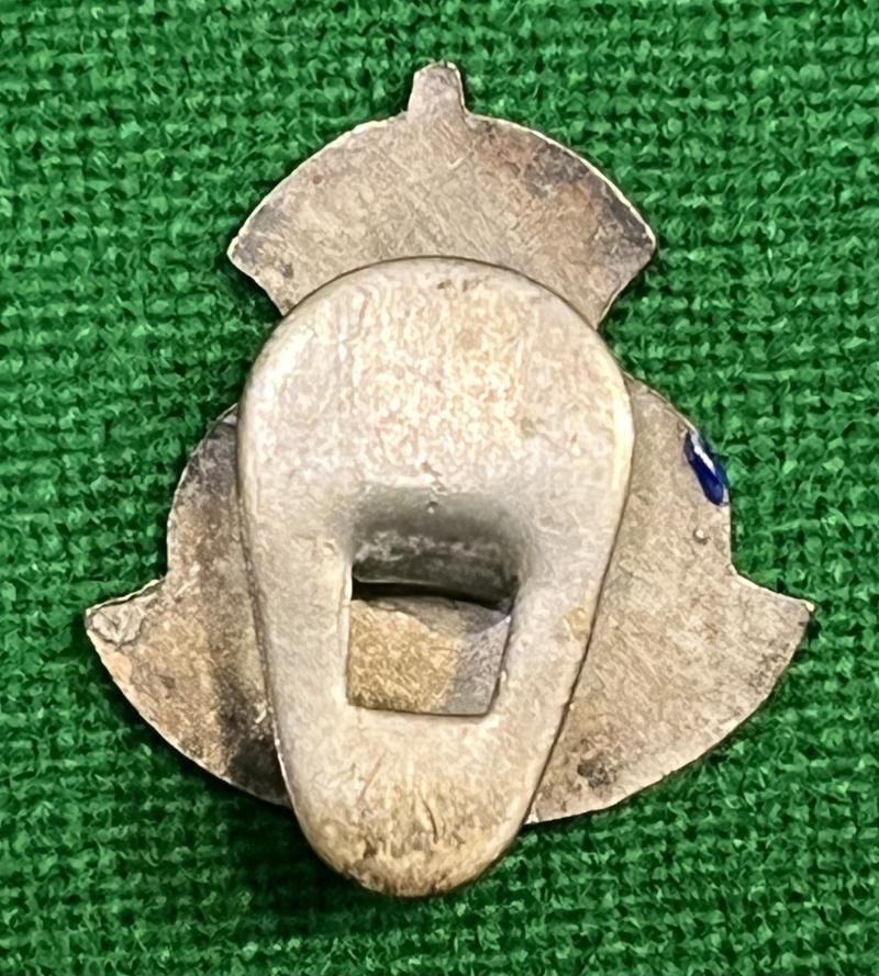 Silver gilt and enamel Home Guard Lapel badge with years of service banner 1940-43. Variation on the more common patterns of lapel badges and a variation of the service indicators. In good, used condition.