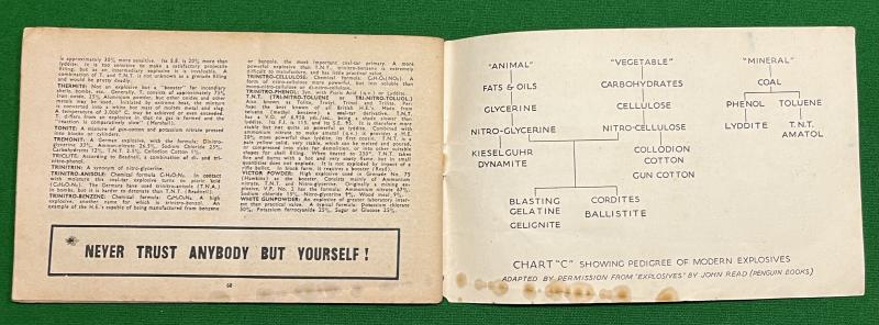 C1943 ' What the HG Needs to Know About Explosives ' by Lt.Chas.C.Knight. One of the Bernards ' Key ' guides series, the manual uses its 68pgs to give a good coverage of the general nature of explosives, their storage and care and their use in typical Home Guard scenarios. Illustrated throughout with sketches and diagrams. One of the more sort out of the Bernards titles in good, used condition with minor rusting to staples.